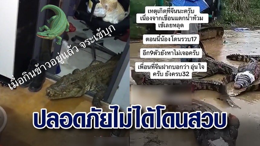 เจ้าของคลิปแสดงตัวแล้ว หลังโพสต์คลิปจระเข้บุกขณะกินข้าว แจงหายไปเพราะติดโควิด ชี้เหตุการณ์นี้เกิดที่จีน จระเข้หลุดเนื่องจากเขื่อนแตกน้ำท่วม รวบแล้ว 17 ตัว อีก 9 ตัวยังไม่เจอ