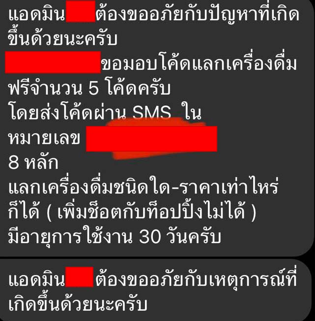 ตัวผู้บริโภคเอง จึงได้ทักไปทางเพจของผู้ให้บริการ โดยบอกว่า ได้คำตอบแบบที่ทุกคนก็รู้คือ คำว่า ขอโทษ และจะแก้ไข แล้วส่งโค้ด เครื่องดื่มฟรีมาให้