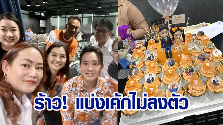 ก่อนเข้าวาระการประชุม สส.วันนี้ มีเพื่อนๆหลายคนเอาเค้กมาให้หัวหน้าพรรค แต่ก็แบ่งกันไม่ลงตัว เนื่องจากมี สส.มากกว่าจำนวนเค้กที่มีอยู่ ส่อแววถึงขั้นพรรคแตกกันเลยทีเดียว #HBDpita #นายกพี่ทิม"