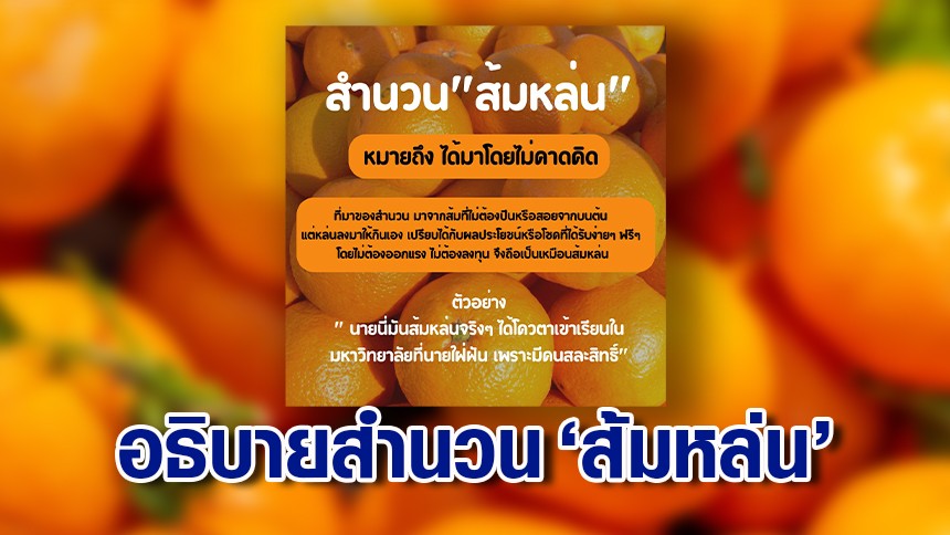 เพจวิทยุโทรทัศน์รัฐสภาอินเทรนด์! อธิบายสำนวน "ส้มหล่น" ชาวเน็ตแห่แซว ขอคำอธิบาย "เทคนิคหาเสียง" ด้วย