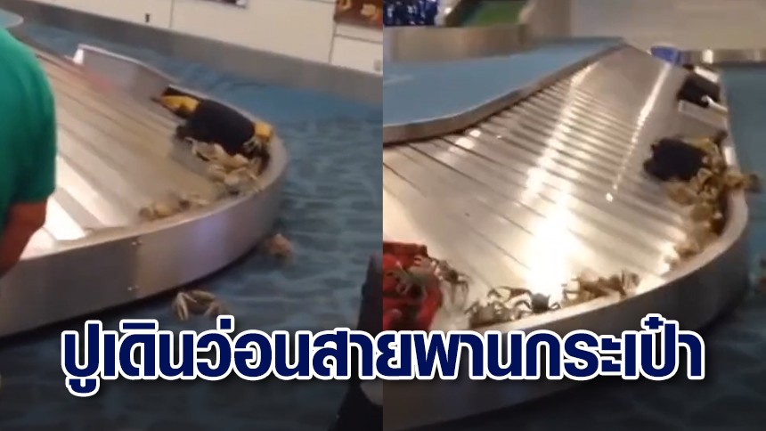 ชาวเน็ตแห่แชร์คลิปในสนามบิน ปูสดๆ เดินว่อนเต็มสายพาน สุดงง น้องมาจากไหน?