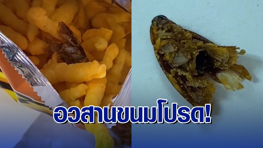 กลายเป็นเรื่องสยองของผู้บริโภคที่ได้รับความสนใจบนโลกออนไลน์เป็นอย่างมา หลังสมาชิกผู้ใช้ TikTok ชื่อ ttpp.ticha ได้โพสต์คลิปวิดีโอที่ชวนอ้วกจะพุ่ง หลังจากเจอเหตุการณ์กำลังกินขนมของโปรดแบรนด์ดัง พอกินไปได้ครึ่งซอง เห็นสิ่งแปลกปลอมบางอย่างเลยลองเขี่ยดู ปรากฏว่าเจอ ‘แมลงสาบ’ อยู่ในถุง โดยผู้โพสต์ระบุข้อความว่า “อวสานขนมโปรด แมลงสาปอบชีส ละคือกินไปครึ่งซอง”