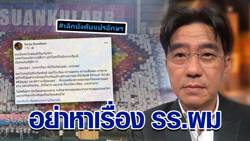 ‘ดู๋ สัญญา’ โพสต์เดือด ดรามา #เลิกบังคับแปรอักษร งานบอลจตุมิตร ชี้เป็นเกียรติภูมิ อย่าหาเรื่องรร.ผม