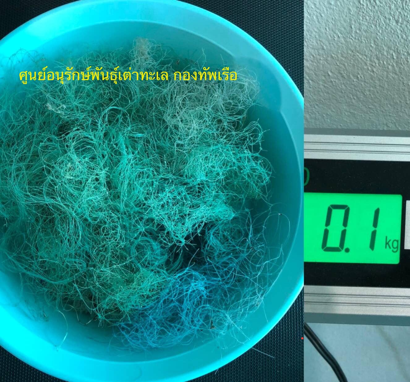 *รวมน้ำหนักเศษอวนขณะแห้ง มีน้ำหนักประมาณ 100 g. (แต่ถ้ารวมปะปนกับเศษอาหารและขยะอื่นๆภายในลำไส้จะมีน้ำหนักทั้งหมด มากกว่า 2 kg.)