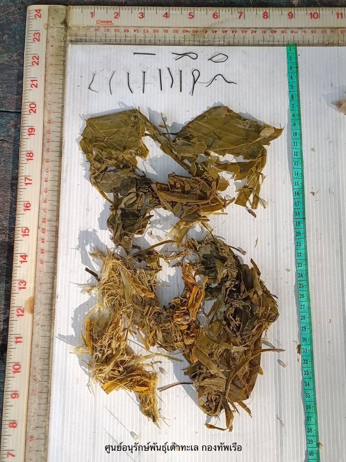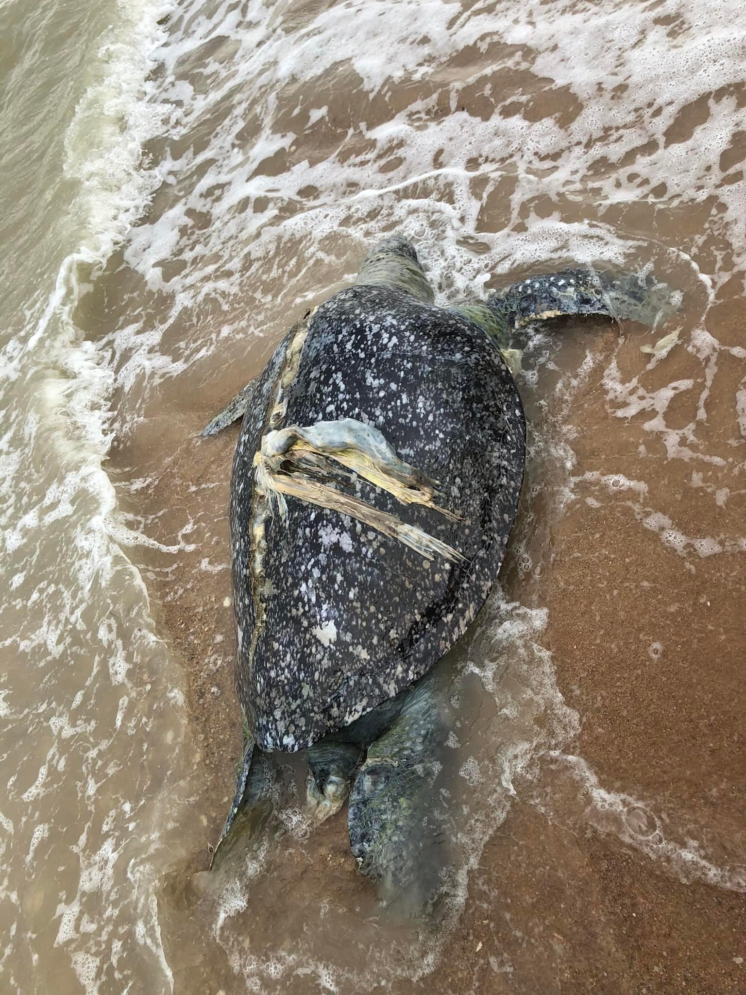 - พบขยะทะเล และสิ่งแปลกปลอมภายในระบบทางเดินอาหารจำนวนมาก เช่น หมุด ตะปู จากกระทง อวน เชือกไนล่อน แผ่นพลาสติก อุดตันในลำไส้