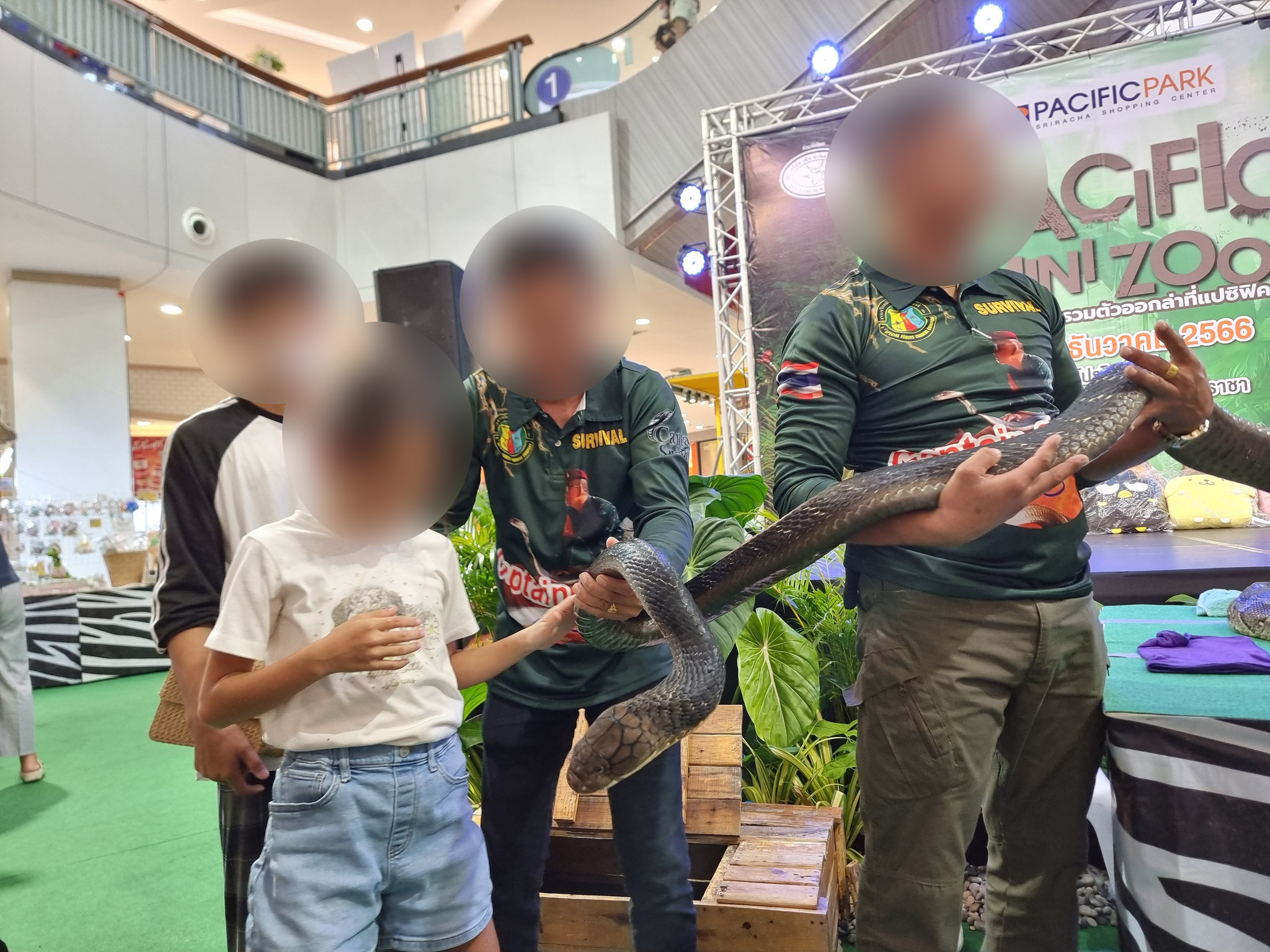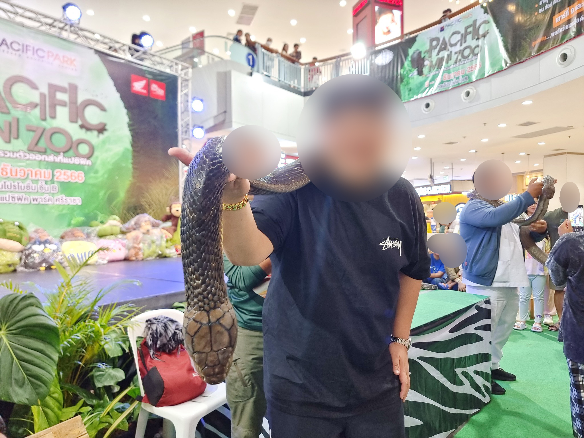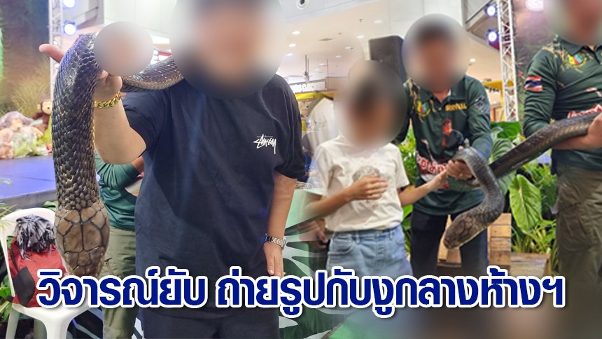 ทัวร์ลง! จัดกิจกรรมถ่ายรูปกับสัตว์มีพิษ “งูจงอาง” กลางห้างฯ ชาวเน็ตคอมเมนต์สนั่น คนแฮปปี้ แต่งูคอตกอิดโรย ไม่ปลอดภัยทั้งคนทั้งงู