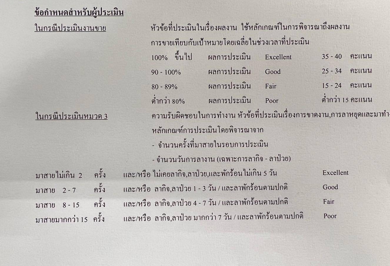 ทีมข่าวออนไลน์ช่อง 3 ได้รับข้อมูลจากพนักงานบริษัทแห่งหนึ่ง ถึงเกณฑ์ประเมินการทำงานประจำปี (KPI) โดยหนึ่งในนั้น มีข้อกำหนดการประเมิน ถึงความรับผิดชอบการทำงาน ที่พิจารณาจากจำนวนครั้งที่มาสายในรอบการประเมิน และจำนวนวันการลางาน (เฉพาะการลากิจ-ลาป่วย) โดยระบุว่า