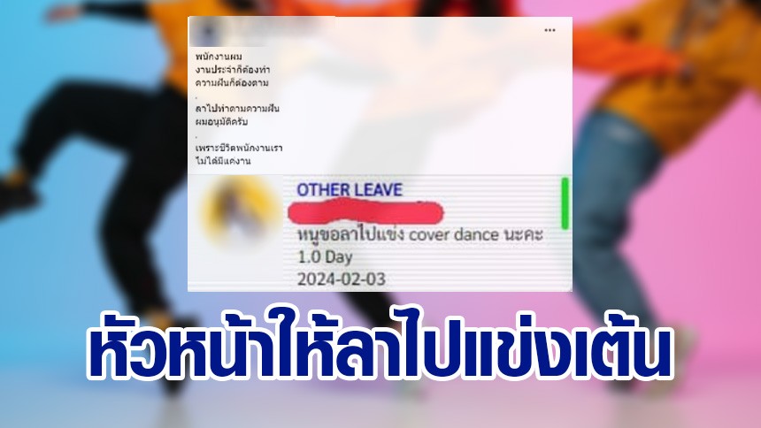 สายเต้นถูกใจสิ่งนี้! หัวหน้าอนุมัติวันลา ให้ลูกน้องไปแข่ง 'Cover Dance' ลั่น "ชีวิตไม่ได้มีแค่งาน"