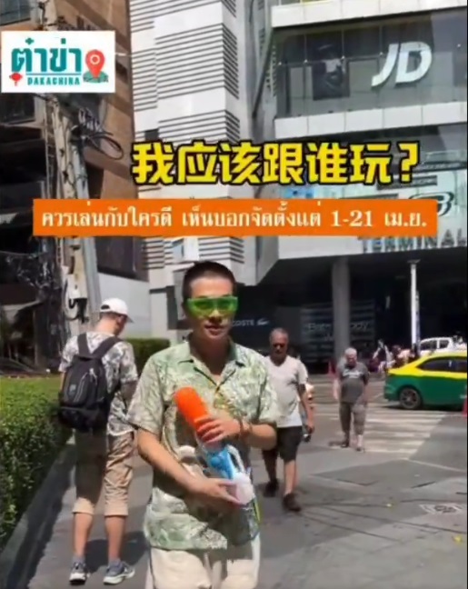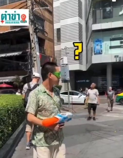 หว่าเว้! “คนจีน” สุดงง เห็นไทยประกาศเล่นสงกรานต์ 21 วัน พกปืนฉีดน้ำมายืนรอเล่นย่านอโศกฯ ใจกลางกรุงเทพฯ พ้อ ไม่เห็นมีใครเล่นด้วยเลย ชาวเน็ตแซวห่วง เขายังไม่เล่นกัน ฉีดปุ๊บระวังโดนสวน