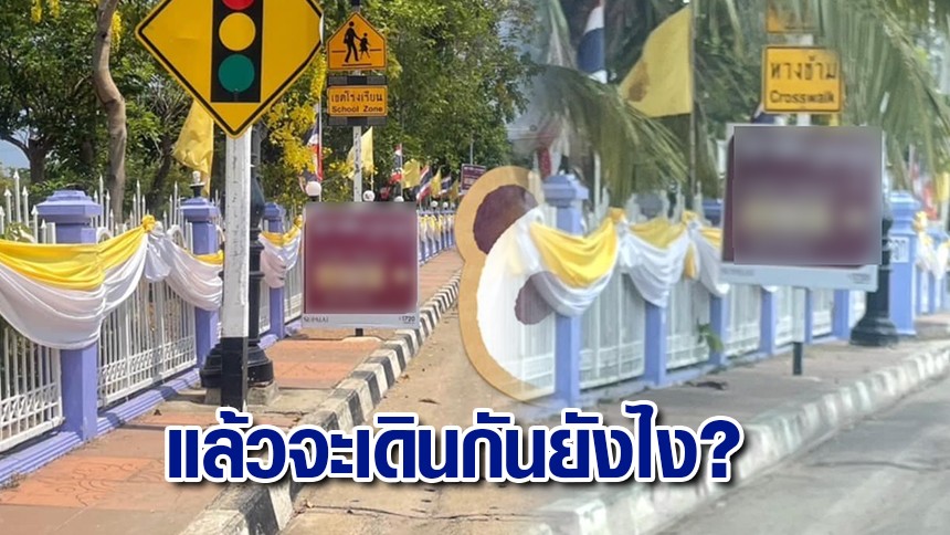 วิจารณ์สนั่น ทั้งเสา-ทั้งป้าย กั้นทางเท้าหน้ารร. รับเปิดเทอม คนจะเดินต้องลงถนน