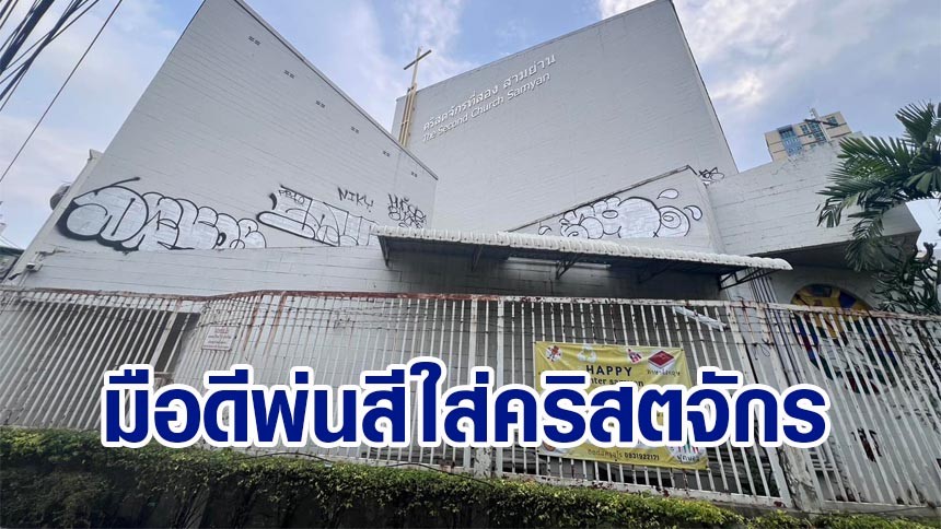 แสดงฝีมือผิดที่! มือดีพ่นสีใส่ 'คริสตจักรที่สอง สามย่าน' อายุ 145 ปี สมาชิกแนะให้มาเป็นจิตอาสาร่วมพัฒนา