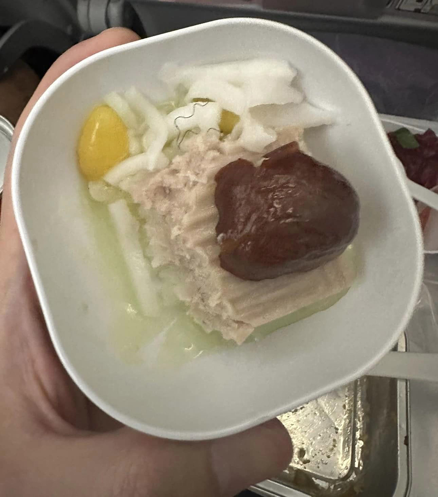 ขยี้ตาอีกที! “วัตถุแปลกปลอม” โผล่ในจานอาหารบนเครื่องบิน ชาวเน็ตแสดงความคิดเห็นสนั่น ลั่น คิดเอาไว้ว่าใช่ ต้องใช่แน่ๆ
