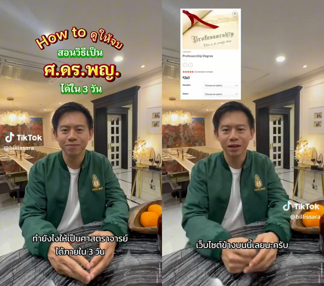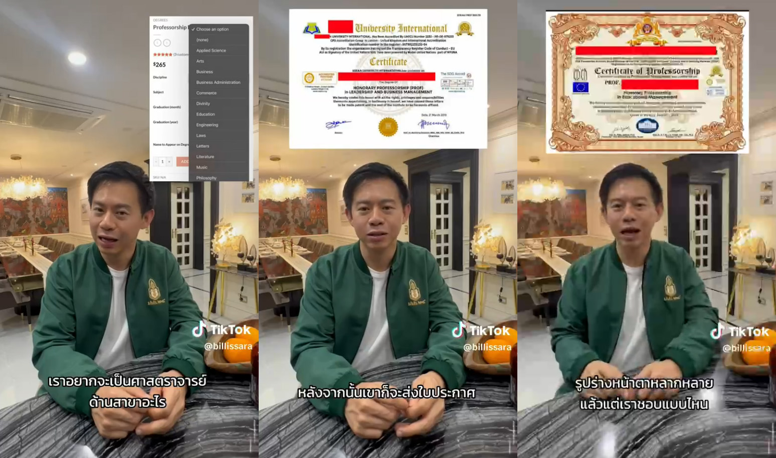 รองเลขาธิการพระปกเกล้า เผยวิธีเป็นศาสตราจารย์ได้ภายใน 3 วัน กดซื้อจากในเว็บไซต์ในราคาไม่ถึงหมื่นบาท เลือกได้อยากเป็นศาสตราจารย์สาขาอะไร เลือกหน้าตาใบประกาศได้