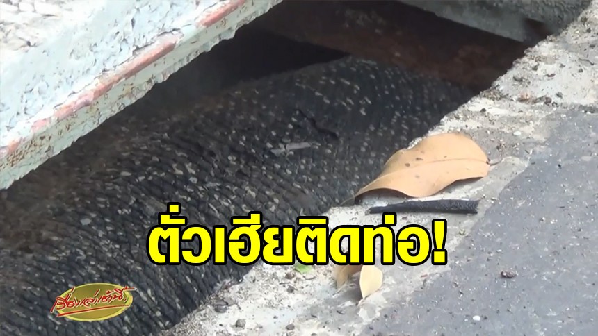พบตัวเงินตัวทองขนาดใหญ่มีความยาว 2 เมตร น้ำหนัก 60 กิโลกรัม คลานมาติดอยู่ที่ท่อระบายน้ำช่องที่