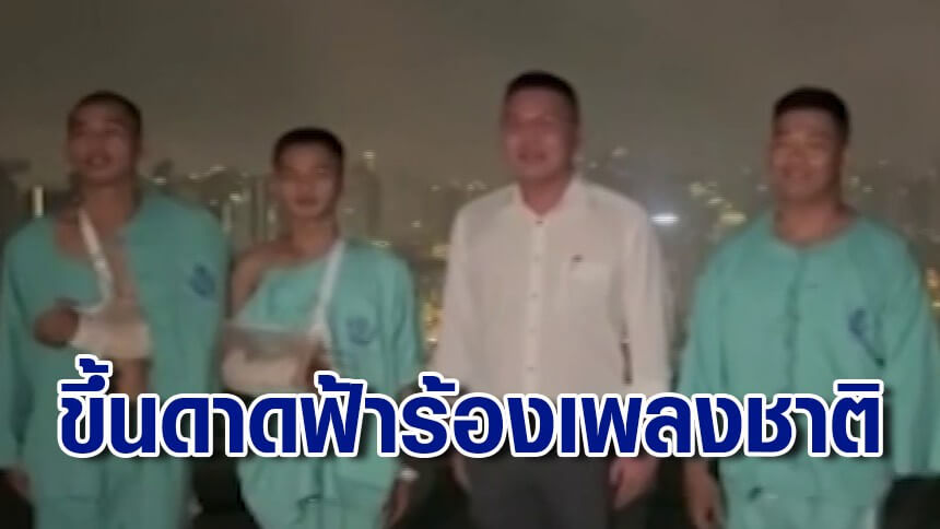 ทหารชายแดน ขึ้นดาดฟ้าร้องเพลงชาติฉลองปีใหม่ หลังพักรักษาตัว รพ.พระมงกุฎเกล้า