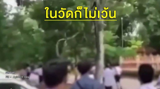 แก๊งนักเรียนขาสั้น ยกพวกตีกันในวัด ไม่แคร์พระ ชาวบ้านไม่กล้ายุ่ง กลัวโดนลูกหลง
