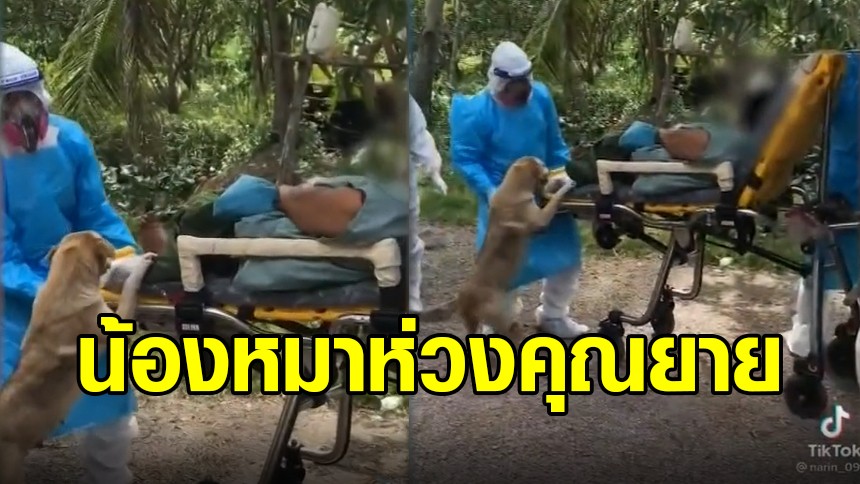 ผู้ใช้ TikTok ชื่อ narin_09t ซึ่งเป็นเจ้าหน้าที่โรงพยาบาลส่งเสริมสุขภาพตำบลแห่งหนึ่ง เป็นคลิปเจ้าหน้าที่สวมชุด PPE เข้ารับตัวคุณยายท่านหนึ่งซึ่งติดเชื้อโควิดและนอนอยู่บนรถเข็น โดยมีสุนัขของคุณยายท่านนี้คอยเดินอยู่ข้างๆ และบางจังหวะจะกระโดดขึ้นไปหาคุณยาย