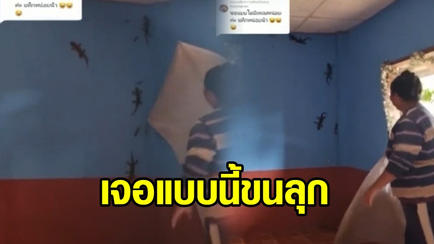 ผู้ใช้ติ๊กต็อก @abusulu17 โพสต์คลิปขณะแกะโปสเตอร์แผ่นใหญ่ออกจากกำแพง ก่อนต้องกรี๊ดลั่น เมื่อเจอตุ๊กแกเป็นฝูงซ่อนอยู่ มีทั้งตัวเล็ก ตัวใหญ่ ทำเอาขนลุก