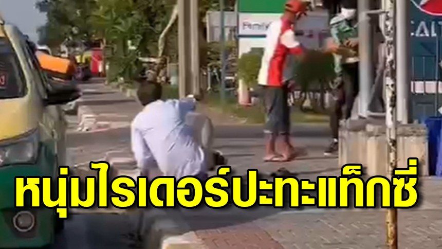 หนุ่มไรเดอร์หัวร้อนชกต่อยกับลุงโชเฟอร์แท็กซี่สาเหตุปาดหน้า