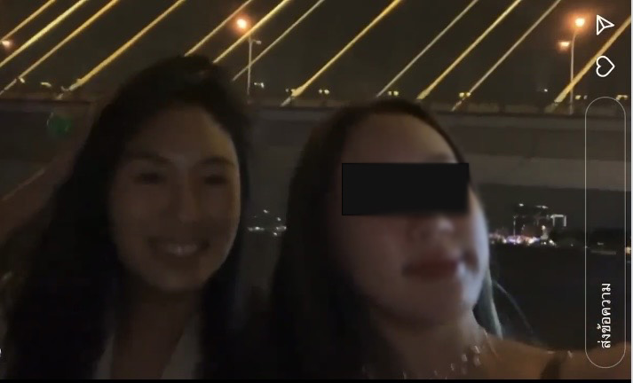 ล่าสุดชาวทวิตเตอร์ได้แชร์ไอจีสตอรี่ของเพื่อนสาวแซน รายหนึ่ง ที่ได้ถ่ายวิดีโอคู่กับแซน ขณะอยู่บนเรือ กำลังปาร์ตี้ล่องอยู่ในแม่น้ำเจ้าพระยา โดยมีฉากหลังคล้ายสะพานพระราม 8 ด้วยเช่นกัน โดยในเรือเหมือนจะมีการเปิดเพลงเสียงดัง มีการเปิดไฟเทคไปทั่วทั้งลำ