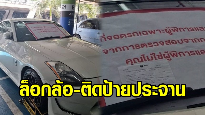 สุดปัง! สุวรรณภูมิล็อกล้อ-ติดป้ายประจาน หนุ่มสาวขับรถหรู จอดในช่องคนพิการ-ผู้สูงอายุ
