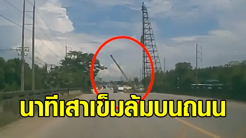 โดยในคลิปจะเห็นว่าเมื่อรถของผู้โพสต์ ขับมาดีๆ จู่ๆ เสาเข็มต้นใหญ่ก็ล้มต่อหน้าต่อตา จนคนในรถร้องออกมาด้วยความตกใจ โชคดีที่ไม่ได้รับอันตราย