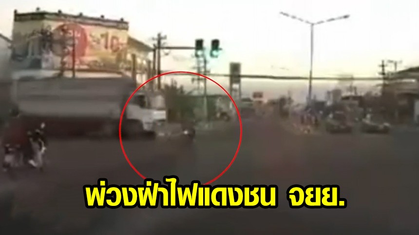 ไฟแดงมีไว้ฝ่า? รถบรรทุกพ่วงซิ่งแหกไฟแดง ชน จยย.อย่างจัง สุดยื้อคนขี่ เสียชีวิตสลด
