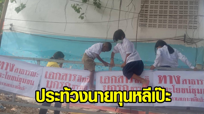 ขณะที่ นร.เองก็ลุกฮือออกมาร้องขับไล่เอกชนดังกล่าวว่าออกไปๆ และบางจุดที่ถูกปิดกั้นแล้ว นร.ก็ต้องปีนรั้วเดินทางกลับบ้านเป็นไปด้วยความลำบาก
