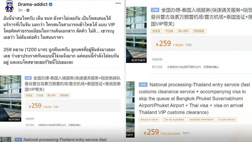 เพจดังแฉอีก เว็บจีนโพสต์ ให้บริการพาเข้าไทยแบบ VIP ไม่ต้องต่อคิวเดินเอกสาร ค่าบริการแสนถูก