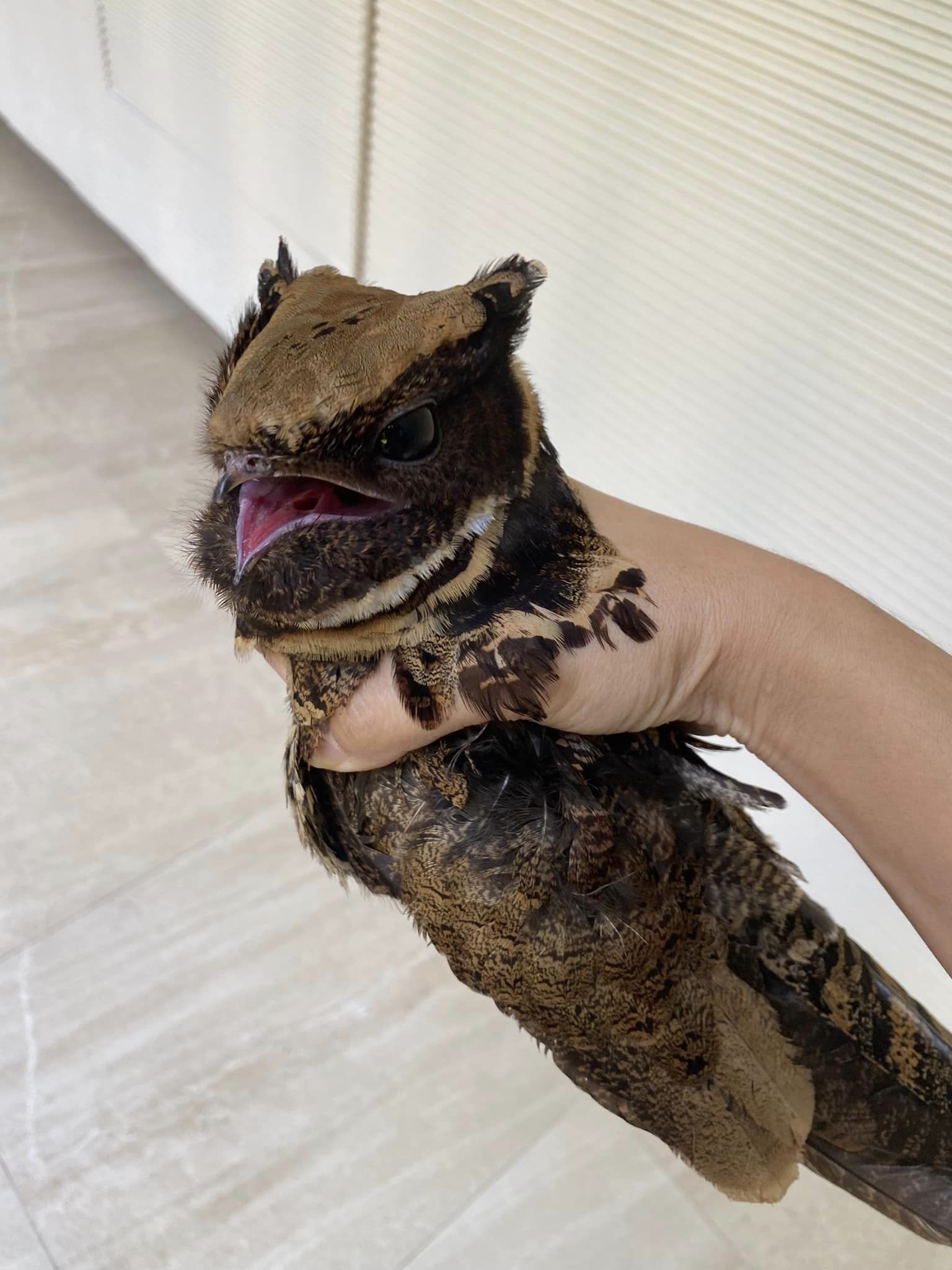 จากกรณีผู้ใช้บัญชีชื่อ Katry Somsaman โพสต์ระบุข้อความว่า "เดินมาเจอกับกลุ่มแม่บ้านและเจ้าหน้าที่รักษาความปลอดภัยกำลังชุลมุนอะไรสักอย่าง เลยเดินเข้าไปดูก็พบว่าทุกคนกำลังช่วยกันจับนกหน้าตาประหลาดออกจากระเบียงห้องหนึ่ง ด้วยความที่เราจับนกเป็นจึงเข้าไปช่วย