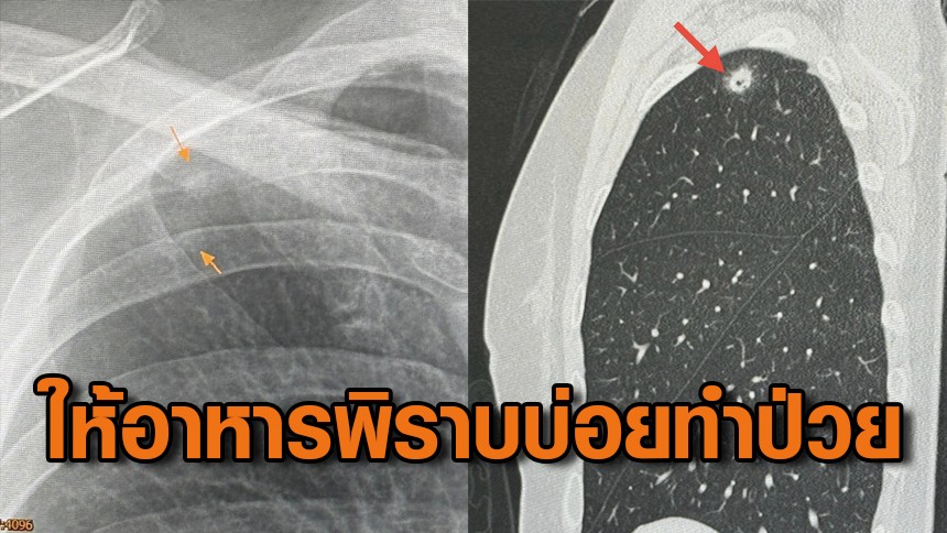 หมอมนูญ ลีเชวงวงศ์ ผู้เชี่ยวชาญด้านโรคระบบทางเดินหายใจ โพสต์ผ่านเพจเฟซบุ๊กแชร์อุทาหรณ์ ผู้ป่วยหญิงอายุ 52 ปี บ้านอยู่ กทม. ปกติแข็งแรงดี ไม่ไอ ไม่มีไข้ ไม่เบื่ออาหาร น้ำหนักไม่ลด ไม่ปวดหัว ไม่เคยสูบบุหรี่ ไม่มีโรคประจำตัว ไปตรวจร่างกายประจำปี วันที่ 12 พฤษภาคม 2567 เอกซเรย์ปอดพบก้อนเล็ก ๆ เกิดขึ้นใหม่ที่ปอดขวากลีบบน ซึ่งเอกซเรย์ปอดก่อนหน้านั้น 1 ปียังเป็นปกติ เมื่อทำคอมพิวเตอร์ปอดพบก้อนขนาด 0.9 × 0.9 × 1.7 เซนติเมตร เห็นโพรงอยู่ข้างในก้อนที่ปอดขวากลีบบน แต่ตรวจเลือดไม่ติดเชื้อเอชไอวี