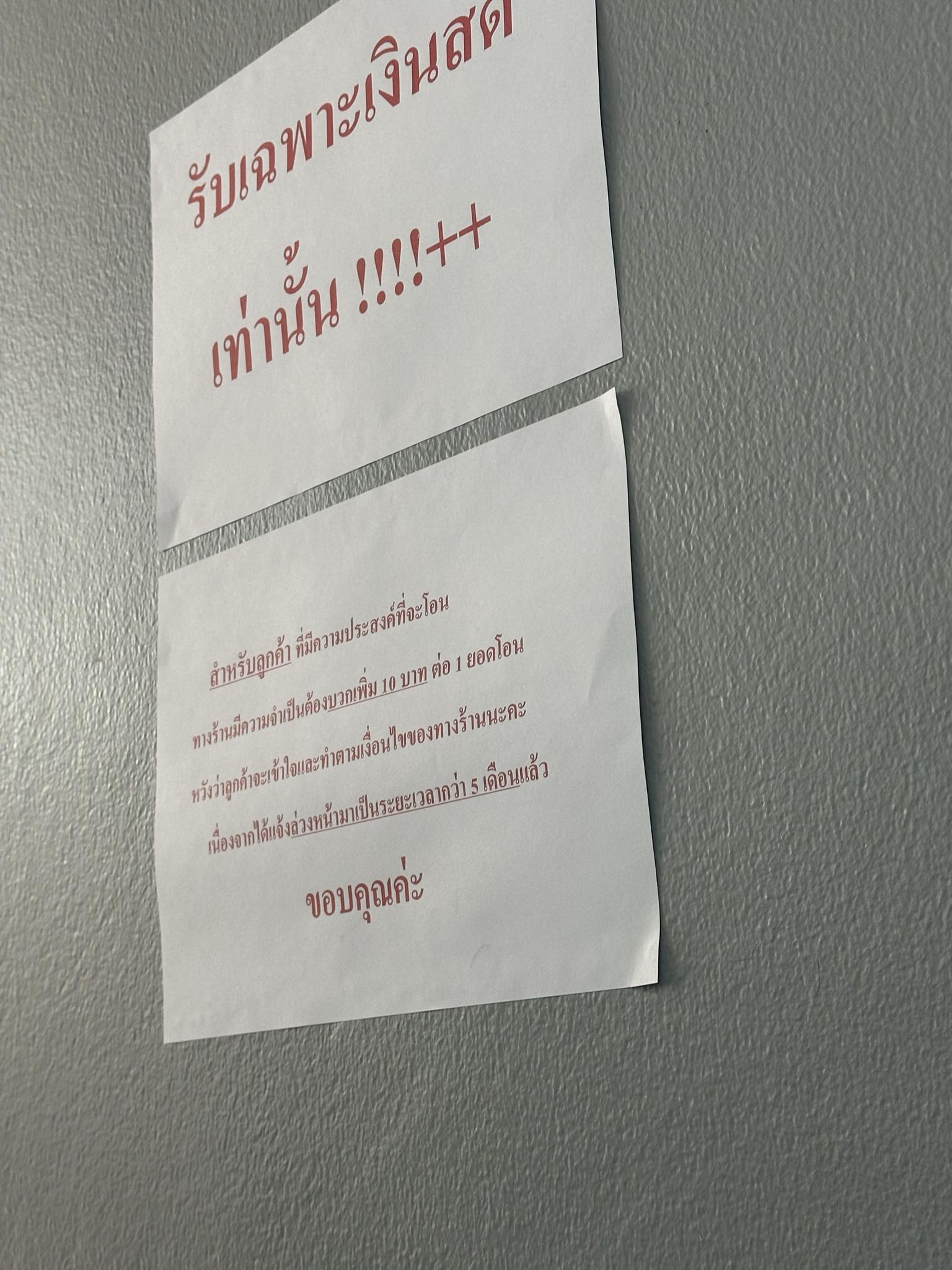 แบบนี้ก็ได้เหรอ? ลูกค้าเจอป้ายร้านค้าขึ้นป้าย จ่ายเงินสดเท่านั้น หากโอนต้องชาร์จเพิ่มยอดละ 10 บาท