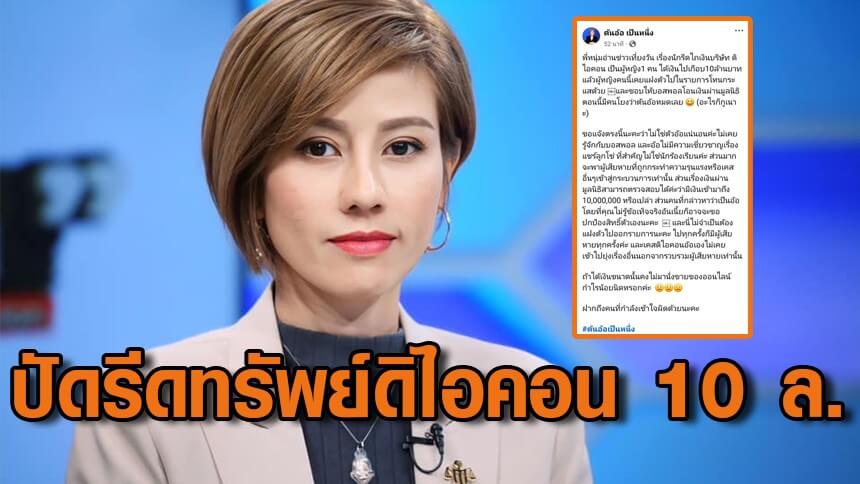 น.ส.ชลิดา พะละมาตย์ หรือ “ต้นอ้อ เป็นหนึ่ง” โพสต์ข้อความผ่านเฟซบุ๊ก หลังถูกโยงเป็นนักร้องเรียนหญิงรีดทรัพย์ “ดิไอคอน” 10 ล้านบาท โดยระบุว่า “พี่หนุ่มอ่านข่าวเที่ยงวัน เรื่องนักรีดไถเงินบริษัท ดิไอคอน เป็นผู้หญิง1 คน ได้เงินไปเกือบ10ล้านบาท แล้วผู้หญิงคนนี้เคยแฝงตัวไปในรายการโหนกระแสด้วย และชอบให้บอสพอลโอนเงินผ่านมูลนิธิ ตอนนี้มีคนโยงว่าต้นอ้อหมดเลย (อะไรก็กูเนาะ)