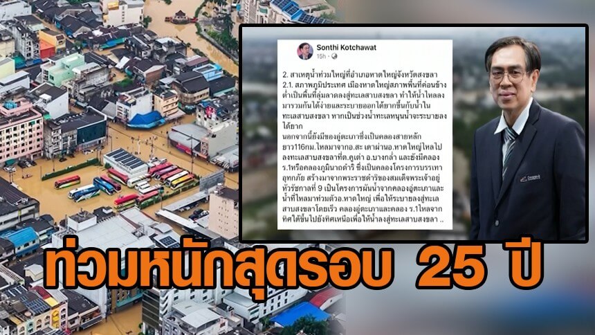 ดร.สนธิ คชวัฒน์ ชี้ภาคใต้วิกฤตหนัก หาดใหญ่ท่วมสูงสุดรอบ 25 ปี สาเหตุจากภูมิประเทศ ฝนสุดขั้ว การบริหารน้ำผิดพลาด