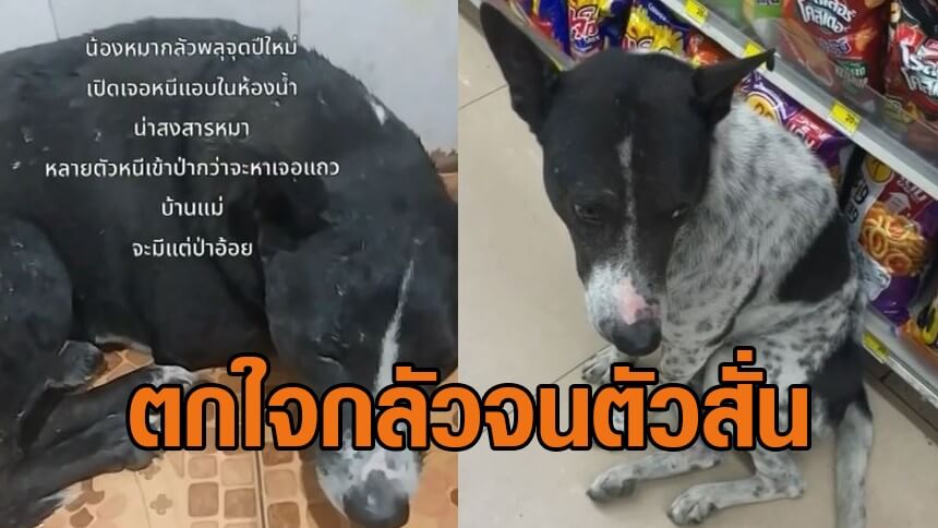 คนจุดพลุฉลองปีใหม่ แต่หมาตกใจวิ่งเตลิด สงสารหนีเข้าร้านสะดวกซื้อ ตัวสั่น