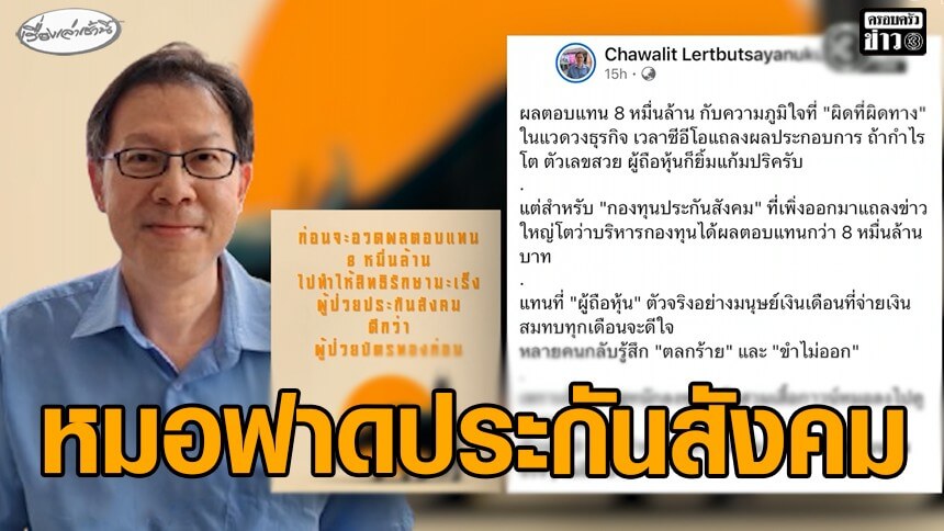 ศ.นพ.ชวลิต เลิศบุษยานุกูล แพทย์รังสีรักษา ประจำโรงพยาบาลจุฬาลงกรณ์ โพสต์เดือด บอร์ดประกันสังคมโชว์กำไร 8 หมื่นล้าน แต่คนจ่ายประกันสังคม สิทธิรักษามะเร็งด้อยกว่าคนใช้บัตรทอง จี้คณะกรรมการเร่งยกระดับ SSO CANCER CARE ให้เท่าเทียม หลังคนจ่ายตังค์ ได้แบบขอไปที แต่คนรักษาฟรี ได้แบบพรีเมียม
