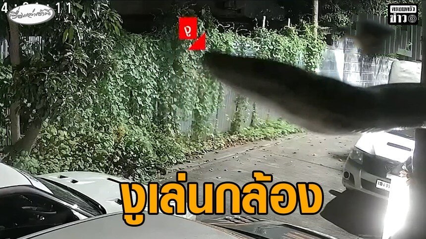 เจ้าของบ้านหัวใจแทบวาย! 'งูยักษ์' เลื้อยผ่านหน้าวงจรปิด แบบระยะประชิด