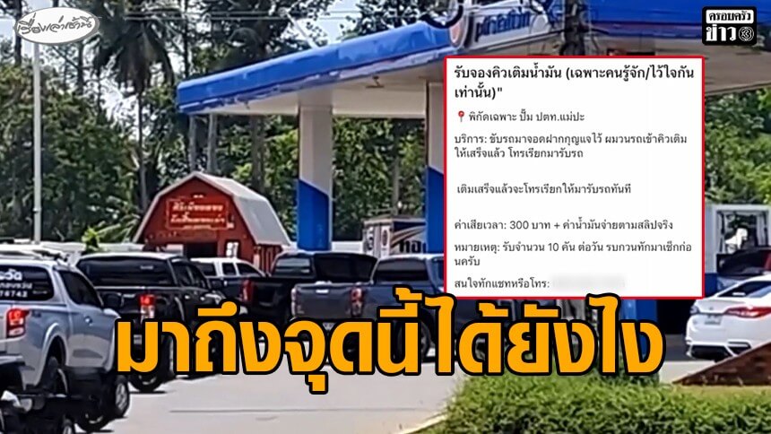 มาถึงจุดนี้แล้ว! เปิดธุรกิจใหม่ท่ามกลางวิกฤต หนุ่มหัวใสโพสต์รับจ้างต่อคิวเติมน้ำมัน ขับรถมาจอดฝากกุญแจไว้ เติมเสร็จแล้วจะโทรเรียกให้มารับรถทันที ค่าเสียเวลา 300 บาท