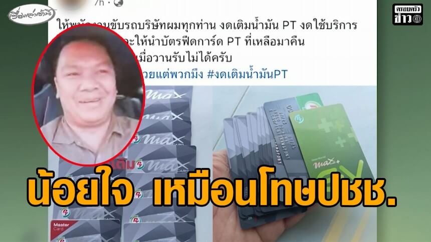กระแสแบนปั๊ม PT เจ้าของบริษัทขนส่ง สั่งพนง.งดเติมน้ำมัน น้อยใจ 'พิพัฒน์' เหมือนโทษปชช.