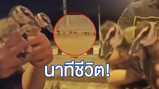 เผยคลิปสุดลุ้น แม่-ลูกนกเป็ดน้ำ รวม 7 ชีวิต พลัดหลงเดินข้ามถนนเทพรัตน หวิดถูกรถเหยียบ