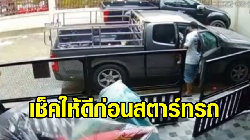 เช็กก่อนสตาร์ท! เตือนภัย ปล่อยลูกไว้ในรถ ลูกเล่นเกียร์พ่อไม่รู้ สตาร์ทรถพุ่งชนราวตากผ้าพังยับ