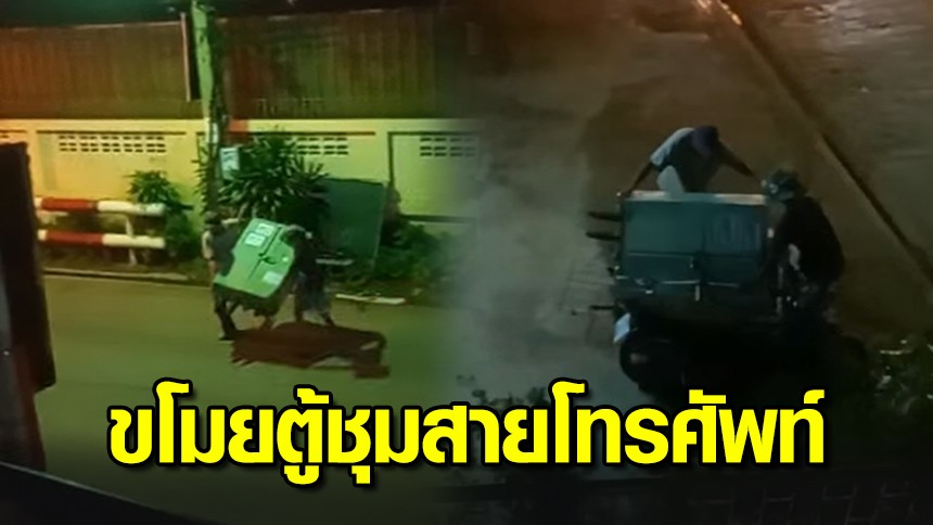 กล้ามาก! เผยคลิปนาที 2 โจรยกตู้ชุมสายโทรศัพท์ขึ้นรถซาเล้ง ก่อนเผ่นหนีลอยนวล