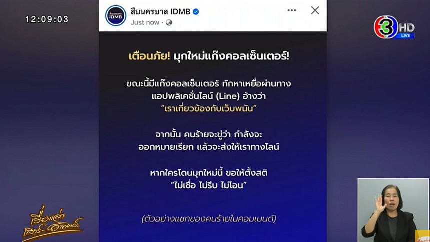 เตือนภัย! แก๊งคอลเซ็นเตอร์ ทักหาเหยื่อผ่านไลน์อ้างเอี่ยวเว็บพนัน ขู่จะออกหมายเรียก