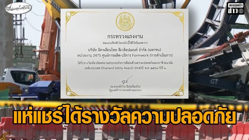 ชาวเน็ตแห่แชร์ 'อิตาเลียนไทย' ได้รางวัลด้านความปลอดภัย จากกระทรวงแรงงาน - ผวาถนนพระราม 2 'แพรรี่ ไพรวัลย์' โพสต์คลิปสวดมนต์ระหว่างเดินทาง หลังเกิดเหตุเครนถล่ม