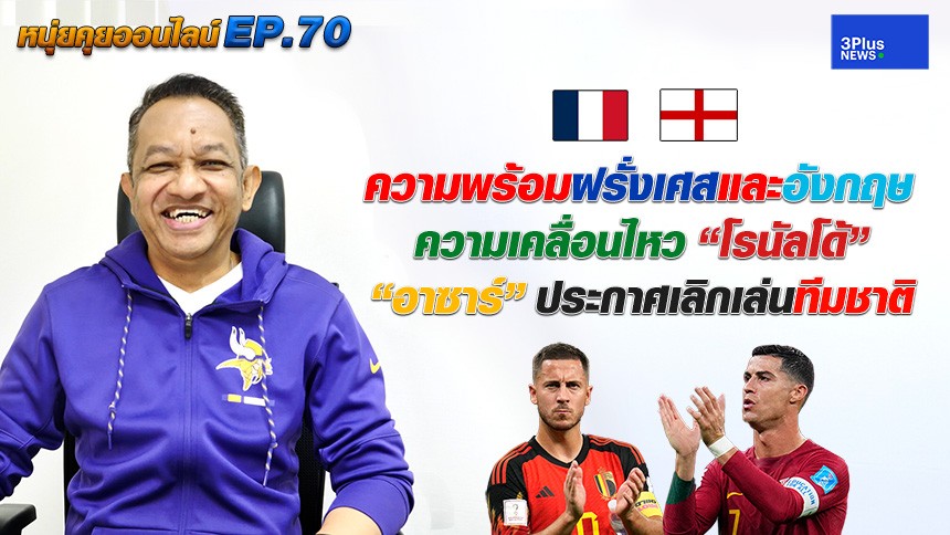 #3PlusNews #ข่าวช่อง3 #หนุ่ยคุยออนไลน์ #บอลโลก #ฟุตบอลโลก2022 #ฝรั่งเศส #อังกฤษ #อาซาร์ #โรนัลโด้ #FIFAWorldCup #โมร็อกโก