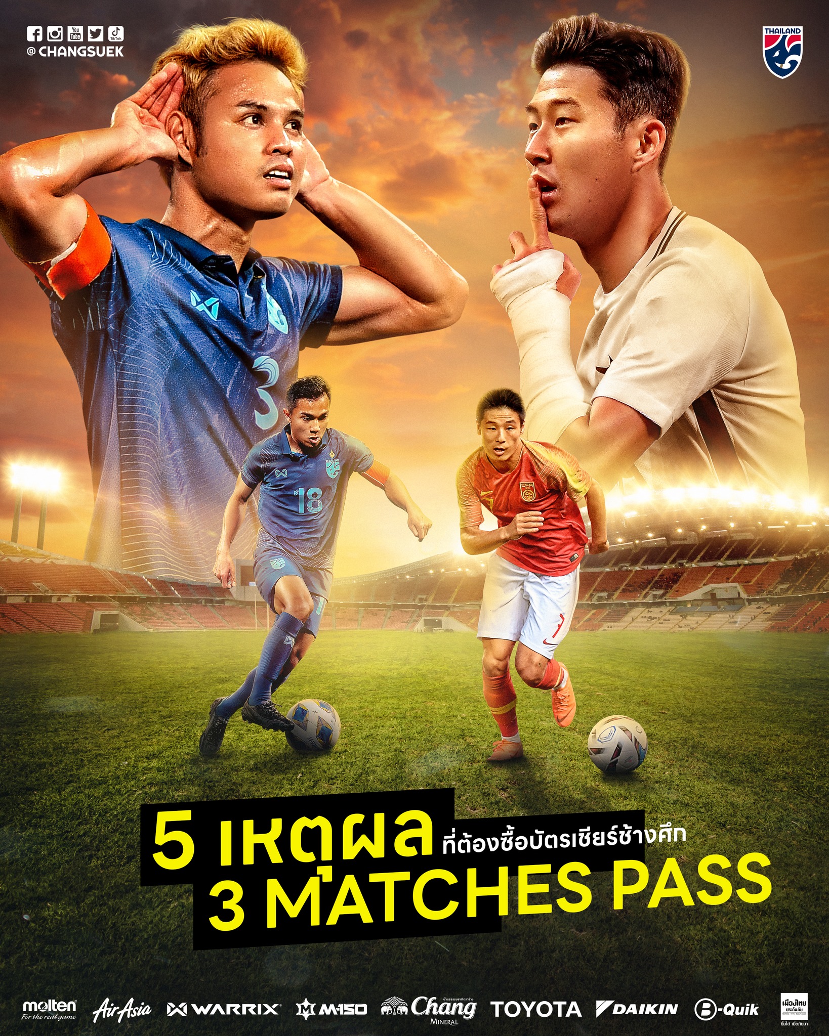 ถึงแม้ว่าคุณจะสามารถซื้อบัตรเข้าชมเกม ทีมชาติไทย พบ จีน ได้ แต่ไม่มีอะไรการันตีว่าคุณจะซื้อบัตรในเกมที่พบ เกาหลีใต้ ได้เลย นอกเสียจากการซื้อบัตรแบบ 3 Matches Pass ที่จะทำให้คุณซื้อเพียงครั้งเดียว แต่สบายใจไปได้ถึง 3 นัด ในบ้านเรา แบบไม่ต้องไปแย่งซื้อกับคนอื่นๆ อีก เพราะทุกนัดในบ้าน เราไม่รับประกันว่าบัตรเข้าชมจะหมดภายในกี่ชั่วโมง!