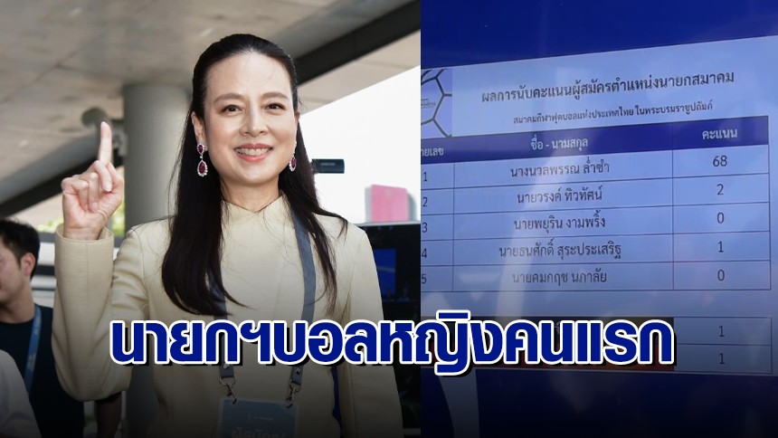 ไม่พลิกโผ! ‘มาดามแป้ง’ กวาดคะแนนเสียงท่วมท้น ชนะเลือกตั้งนายกฯ ส.บอลไทย