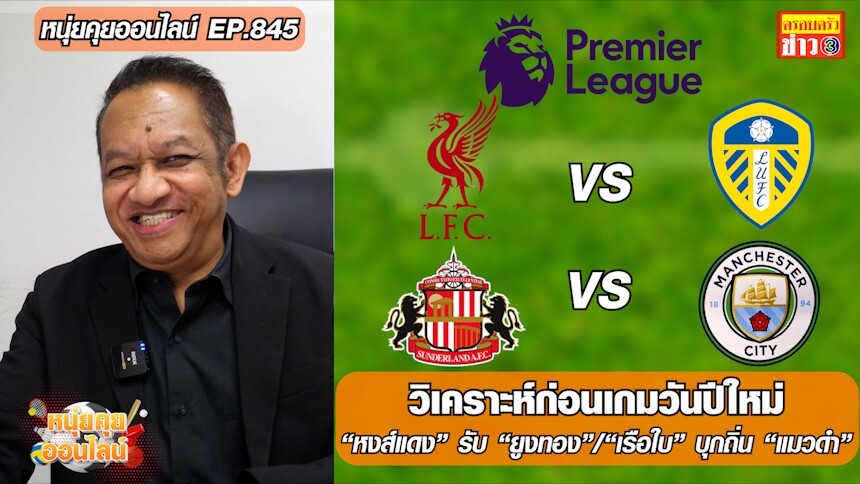 #ครอบครัวข่าว3 #ข่าวช่อง3 #ข่าวกีฬา #หนุ่ยคุยออนไลน์ #อาร์เซนอล #ลิเวอร์พูล #ลีดส์ยูไนเต็ด #แมนซิตี้ #ซันเดอร์แลนด์ #พรีเมียร์ลีก #วิเคราะห์บอล