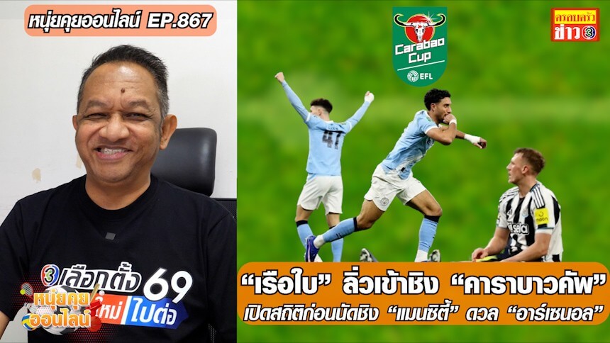 หนุ่ยคุยออนไลน์ EP.867 “เรือใบ” ลิ่วเข้าชิง “คาราบาวคัพ” / เปิดสถิติก่อนนัดชิง “แมนซิตี้” ดวล “อาร์เซนอล”