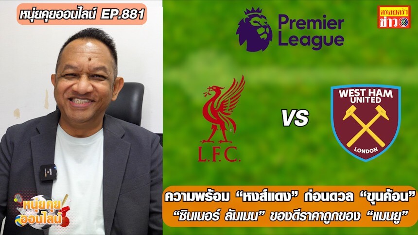 #ครอบครัวข่าว3 #ข่าวช่อง3 #ข่าวกีฬา #หนุ่ยคุยออนไลน์ #ลิเวอร์พูล #เวสต์แฮม #ฟอเรสต์ #คริสตัลพาเลซ #พรีเมียร์ลีก #แมนยู #คอนเฟอเรนซ์ลีก #ยูโรปาลีก #หมอนทองวิทยา